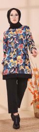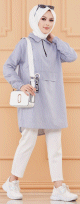 Tunique avec col foufrou (Tuniques pour femmes musulmanes style chic) - Rayures couleur bleu - REF. 36605 (22.00 €)