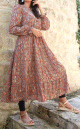 Robe mi-longue à volant motif fleurie et dorée pour femme - Couleur rouille et noir - REF. 36110 (24.90 €)
