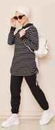 Tunique pour femme (Vêtement Hijab Style Sport et Décontracté) - Rayures de couleur noir - REF. 37517 (18.00 €)
