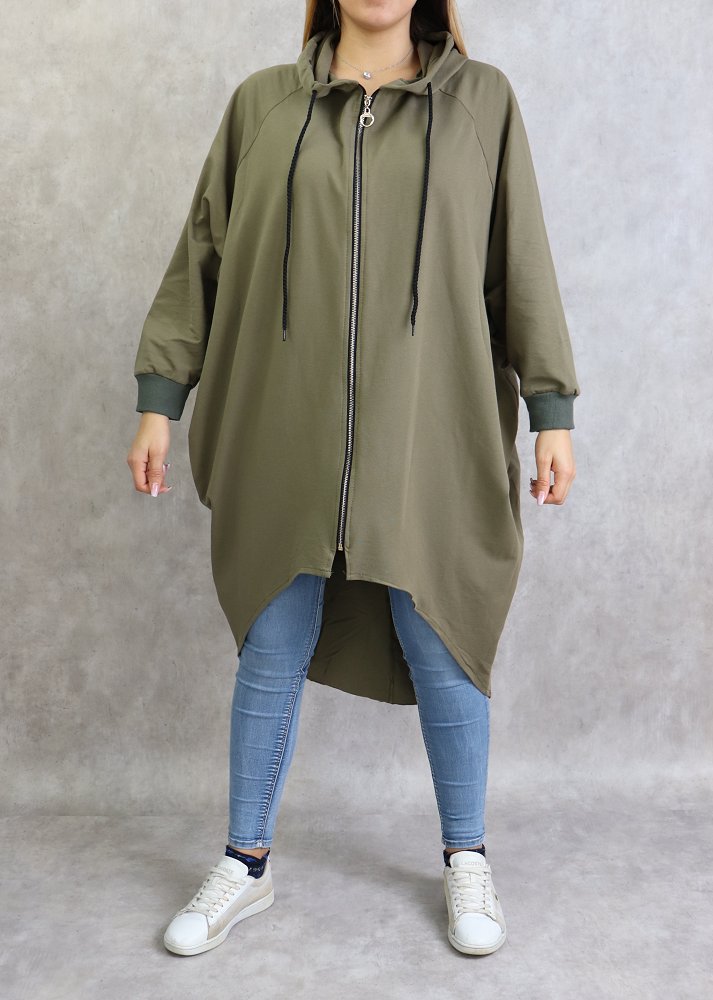 Veste longue sportswear avec capuche de couleur kaki Vetement & Accessoire