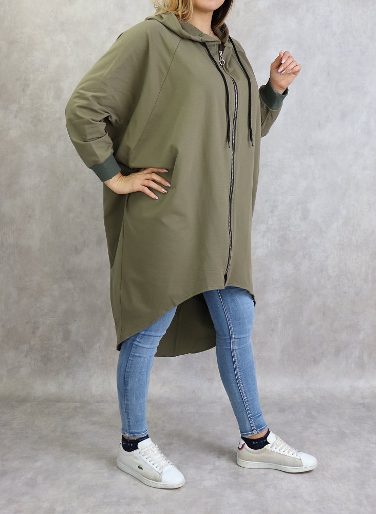 Veste longue sportswear avec capuche de couleur kaki
