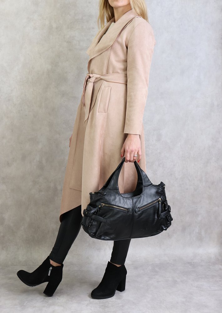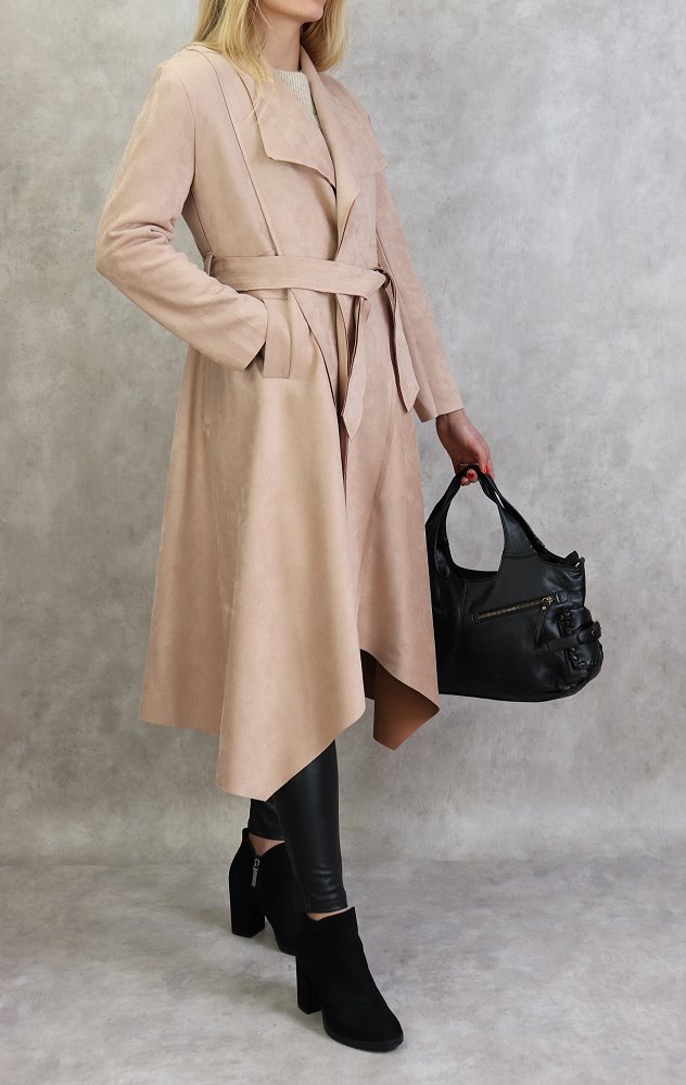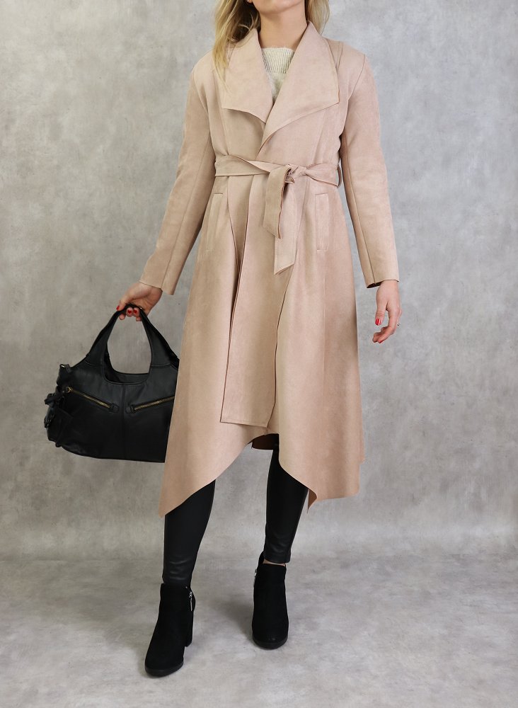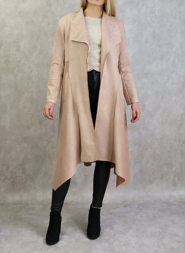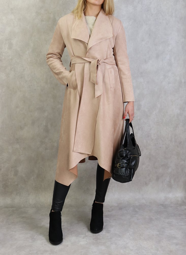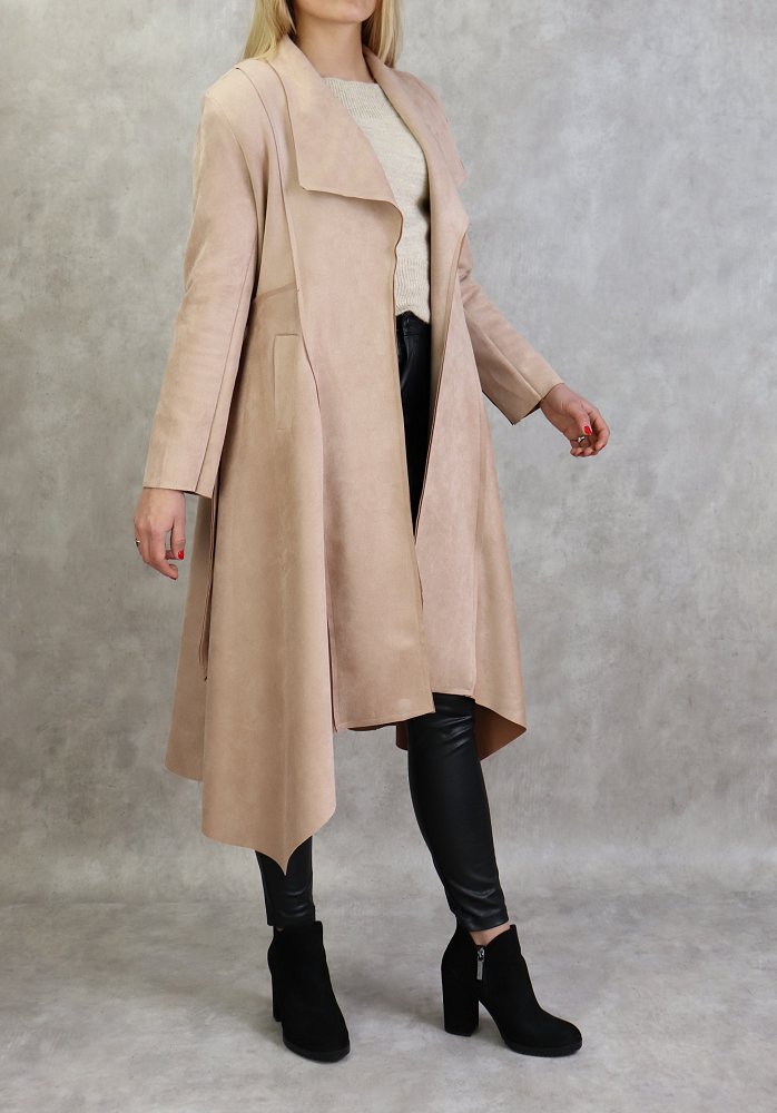 Veste trench effet nubuck au toucher daim de couleur beige