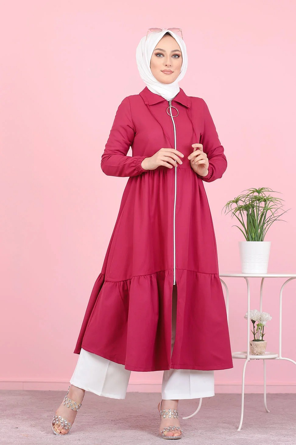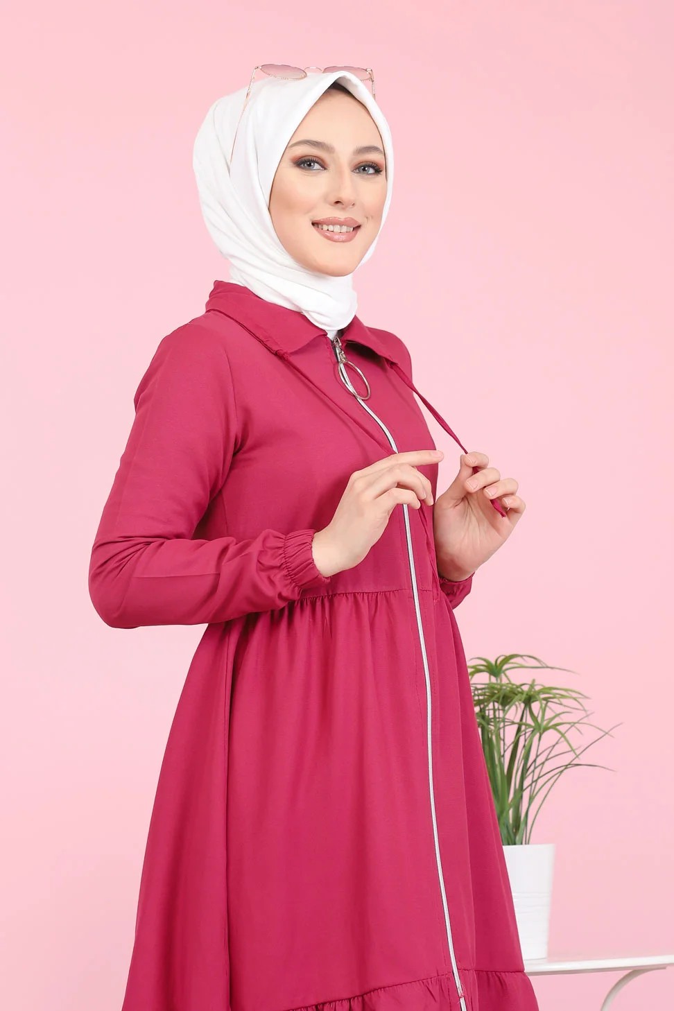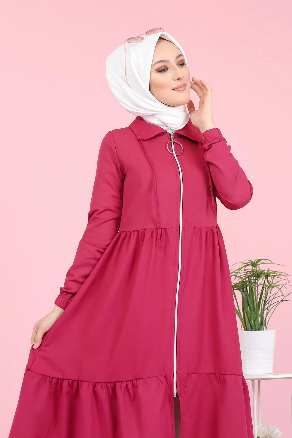 Veste zippée légère mi longue (Tenue ample pour femme voilée) - Couleur framboise Vetement & Accessoire