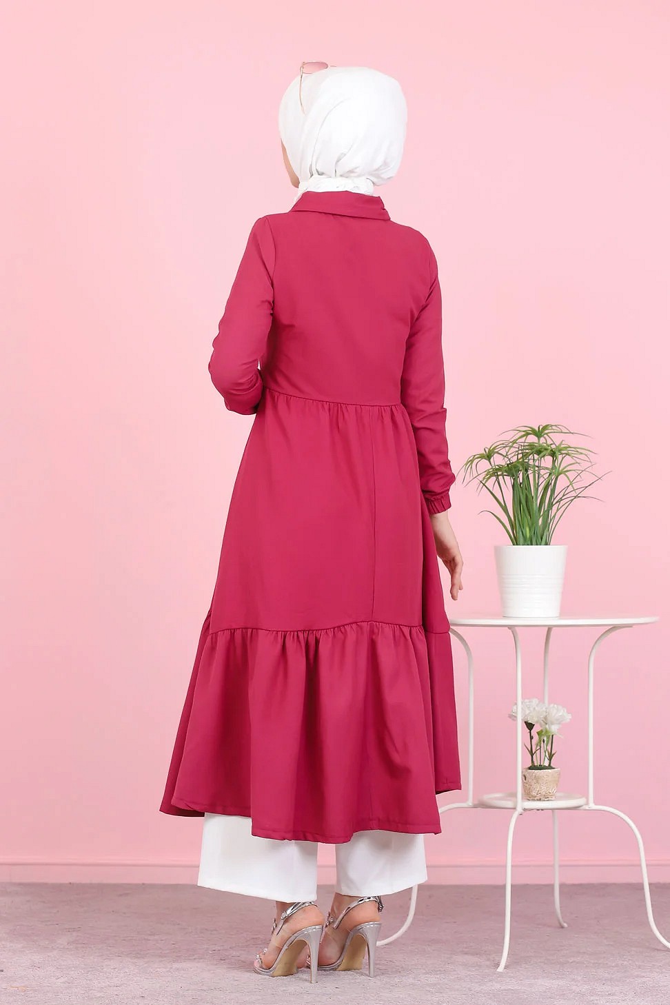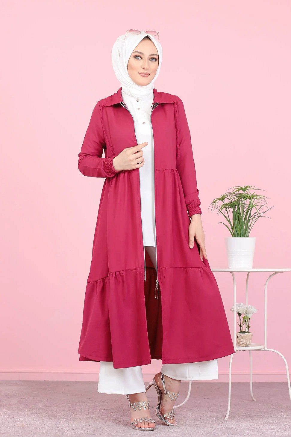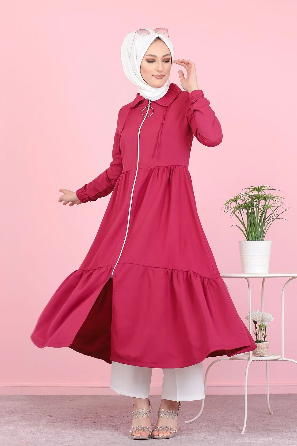 Veste zippée légère mi longue (Tenue ample pour femme voilée) - Couleur framboise Vetement & Accessoire