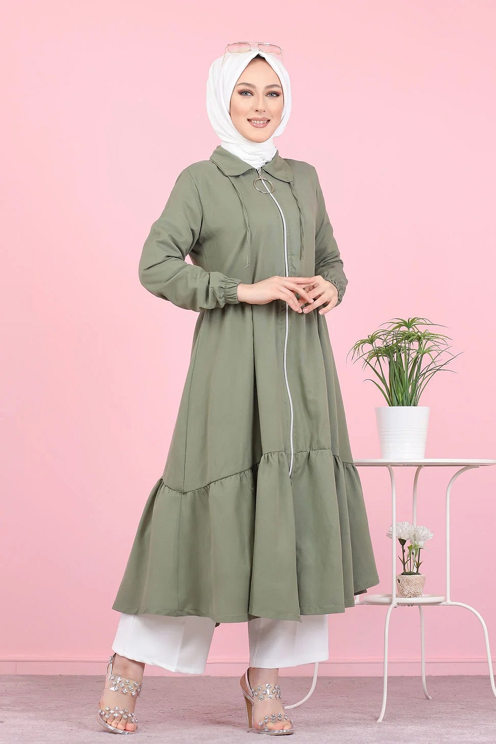 Veste zippée légère mi longue (Vetement ample pour femme voilée) - Couleur kaki Vetement & Accessoire
