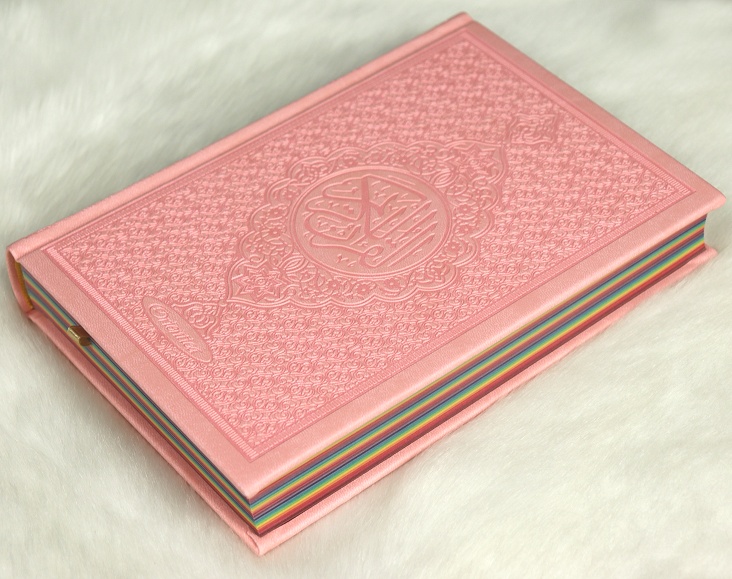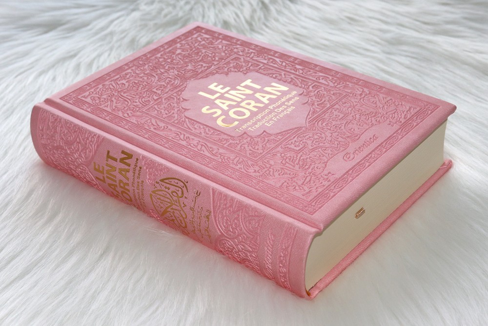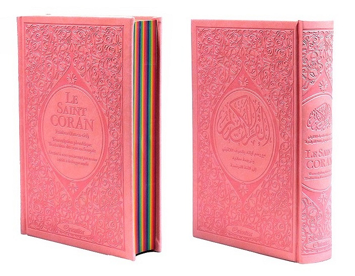 | Le Saint Coran en langue arabe + Transcription phonétique et Traduction des sens en français - Edition de luxe - Couverture en cuir rose clair doré - Editeur : Orientica - REF. 36187 - 26.90 €  - Conditionnement : C=24=21.4kg=43*31*27cm | à nouveau dispo |  |