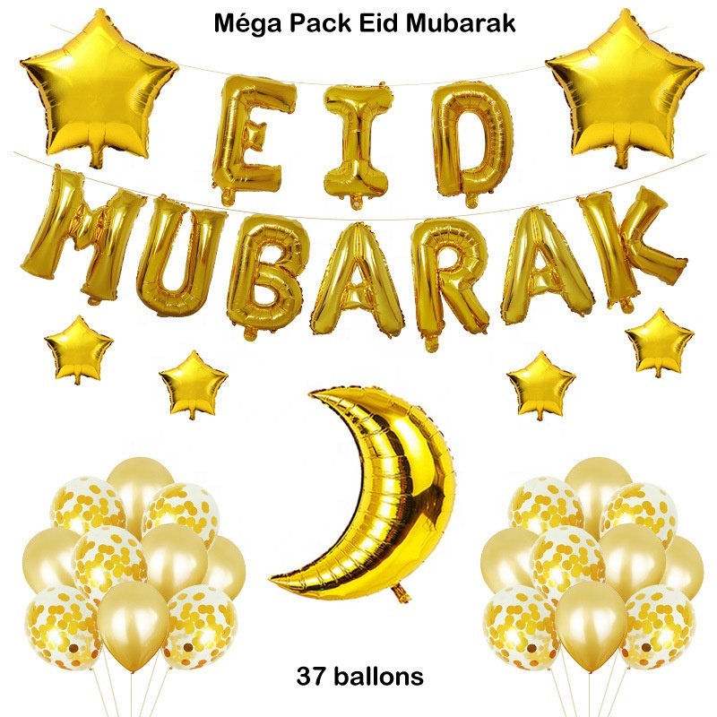 | Mega Pack Eid Mubarak 24 grands ballons dorés pour une décoration Aïd Moubarak réussie - REF. 35004 - 19.00 €  | NOUVEAU |  |