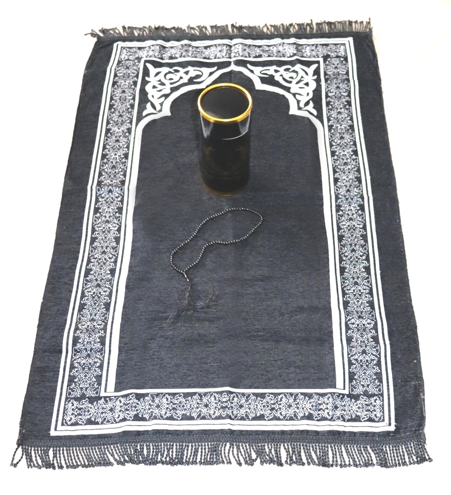 | Tapis de prière de luxe anti-dérapant de couleur Noir avec motifs et franges dorés (70 x 115 cm) - REF. 38310 - 12.00 €  | NOUVEAU |  |