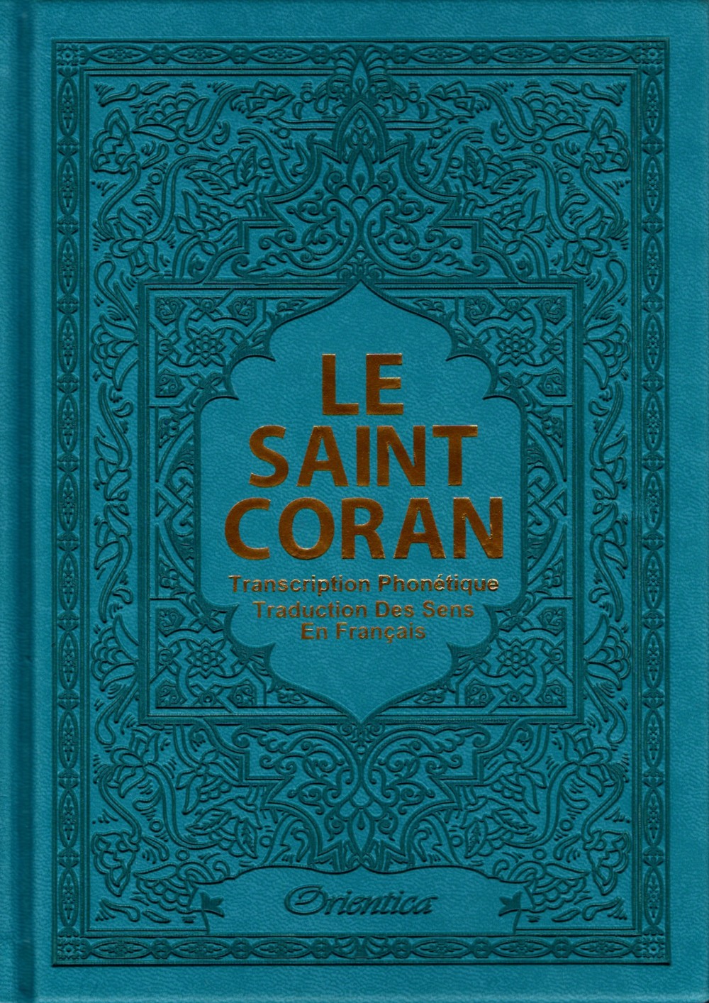 | Le Saint Coran en arabe + Transcription phonétique (de l'arabe) et Traduction des sens en français - Edition de luxe - Couverture simili cuir bleu-turquoise dorée ♥ - Editeur : Orientica - REF. 36189 - 26.90 €  - Conditionnement : c=20=17.45kg=42*31*22cm | à nouveau dispo |  |