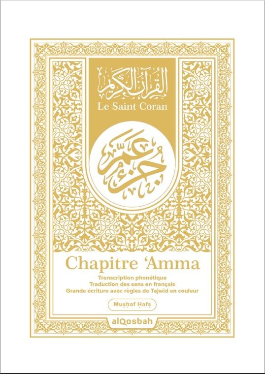 | Le Saint Coran Chapitre 'Amma (Grand format) : français-arabe-phonétique avec règles de Tajwîd en couleur et vidéos Codes QR- Couverture Blanche dorée ♥ - Traduction Pr Muhammad Hamidullah - Editeur : AlQosbah - REF. 40865 - 3.50 €  | NOUVEAU |  |