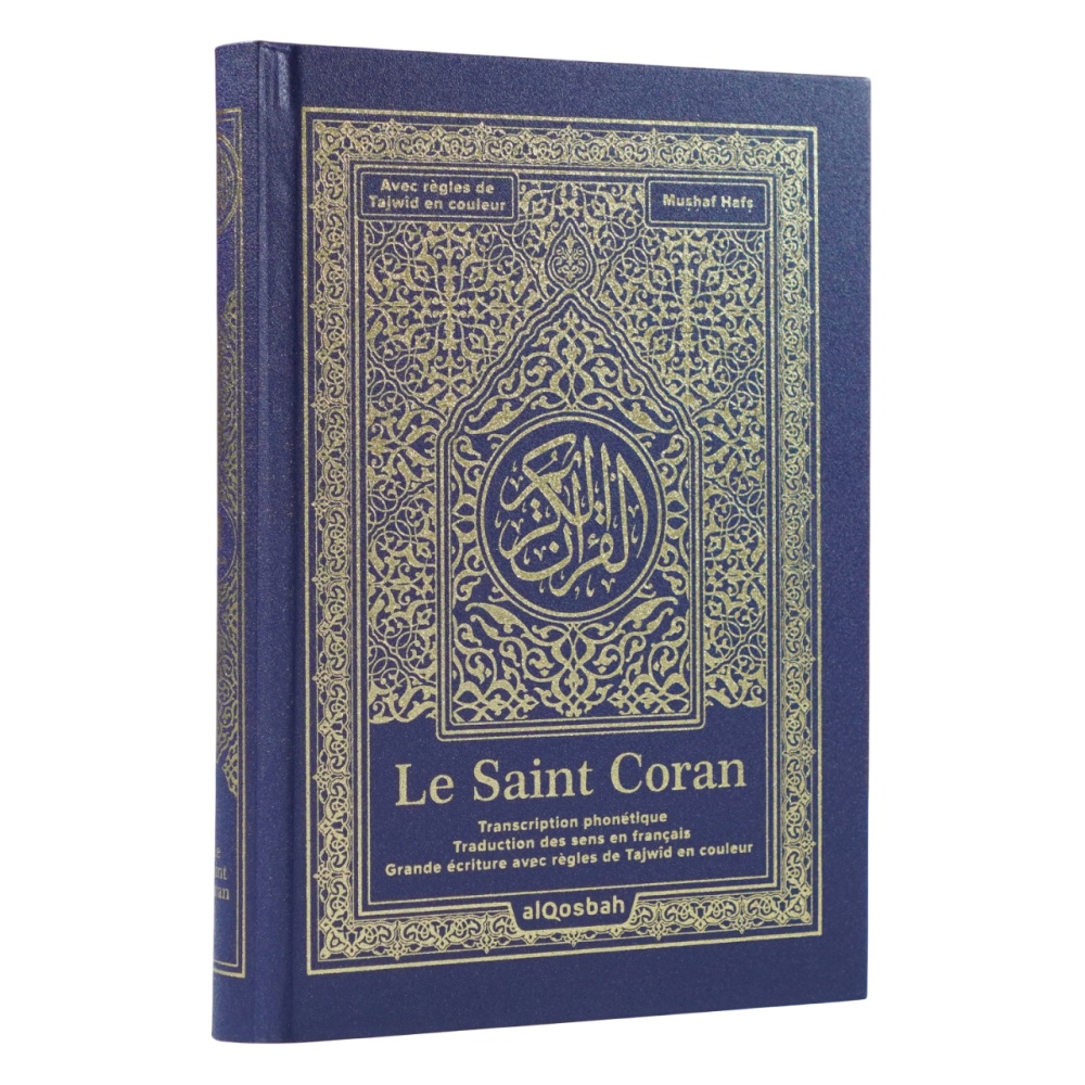 | Le Saint Coran - Transcription phonétique - Traduction des sens en français - Règles de Tajwîd en couleur - Code QR - Bleu doré (16 x 21,5 cm) ♥ - Editeur : AlQosbah - REF. 40922 - 26.00 €  | NOUVEAU |  |