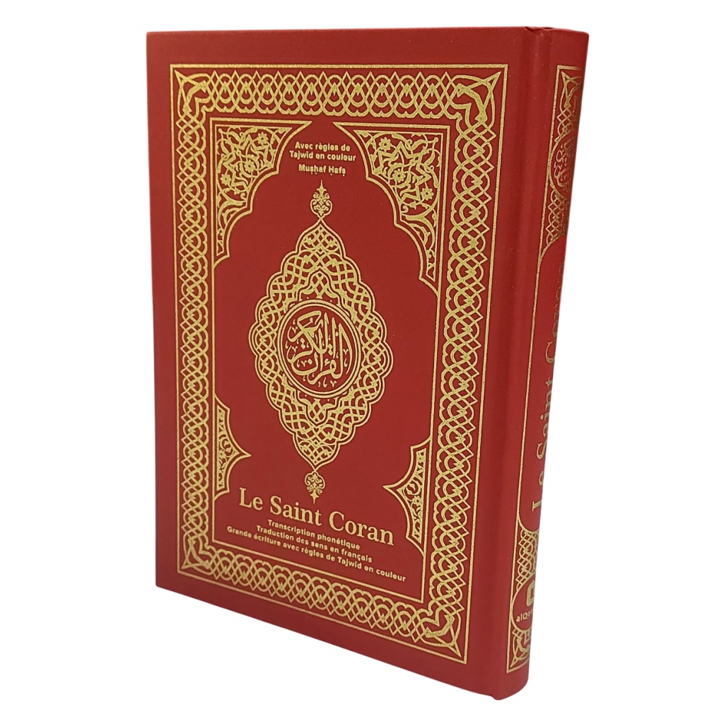 | Le Saint Coran avec grands caractères - Transcription phonétique - Traduction des sens en français - Règles de Tajwîd en couleur - QR Codes - Rouge doré (13,5 x 18 cm) ♥ - Editeur : AlQosbah - REF. 40929 - 28.00 €  | NOUVEAU |  |