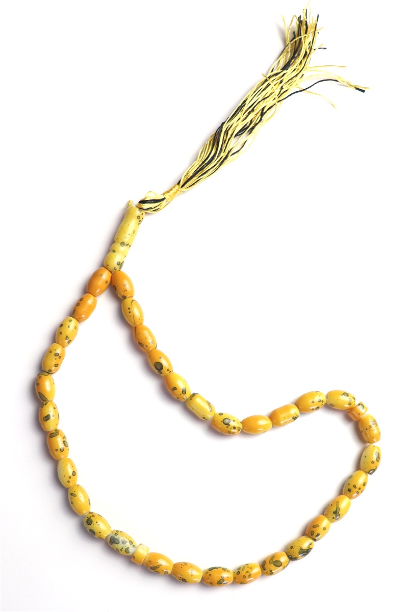 chapelet musulman (sebha) 33 grains en verre couleur jaune avec motifs - REF. 33605 (2.90 €)
