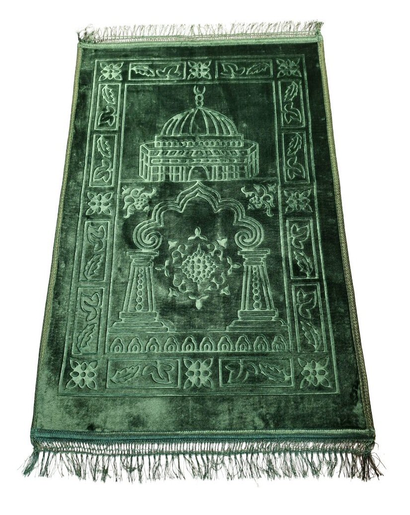 Grand tapis de luxe (80 x 120 cm) épais avec dessous antidérapant. Très doux au toucher avec motif sous forme de mosquée indiquant la direction de la quibla. Plusieurs autres couleurs sont disponibles.