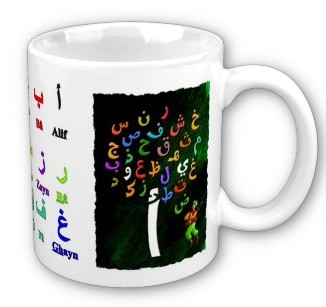 Mug Lettres arabes (Tasse en porcelaine avec alphabet arabe artistique) - REF. 22434 (5.90 €)