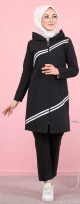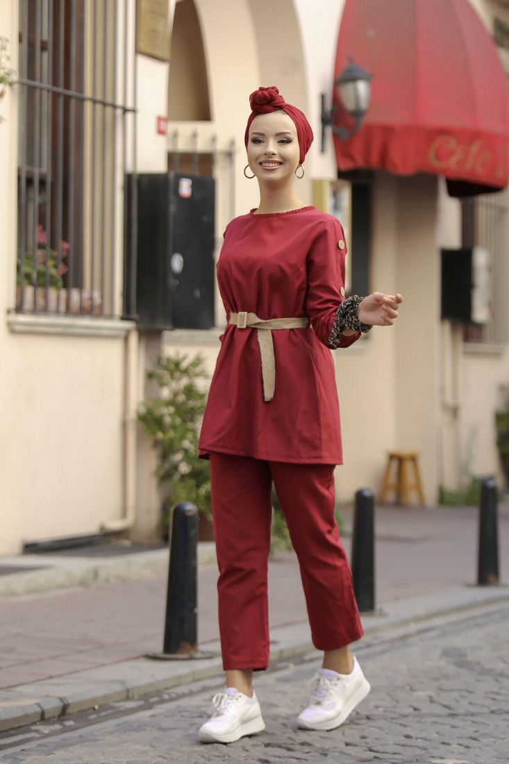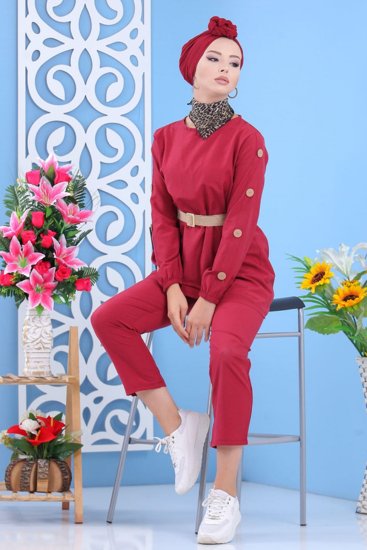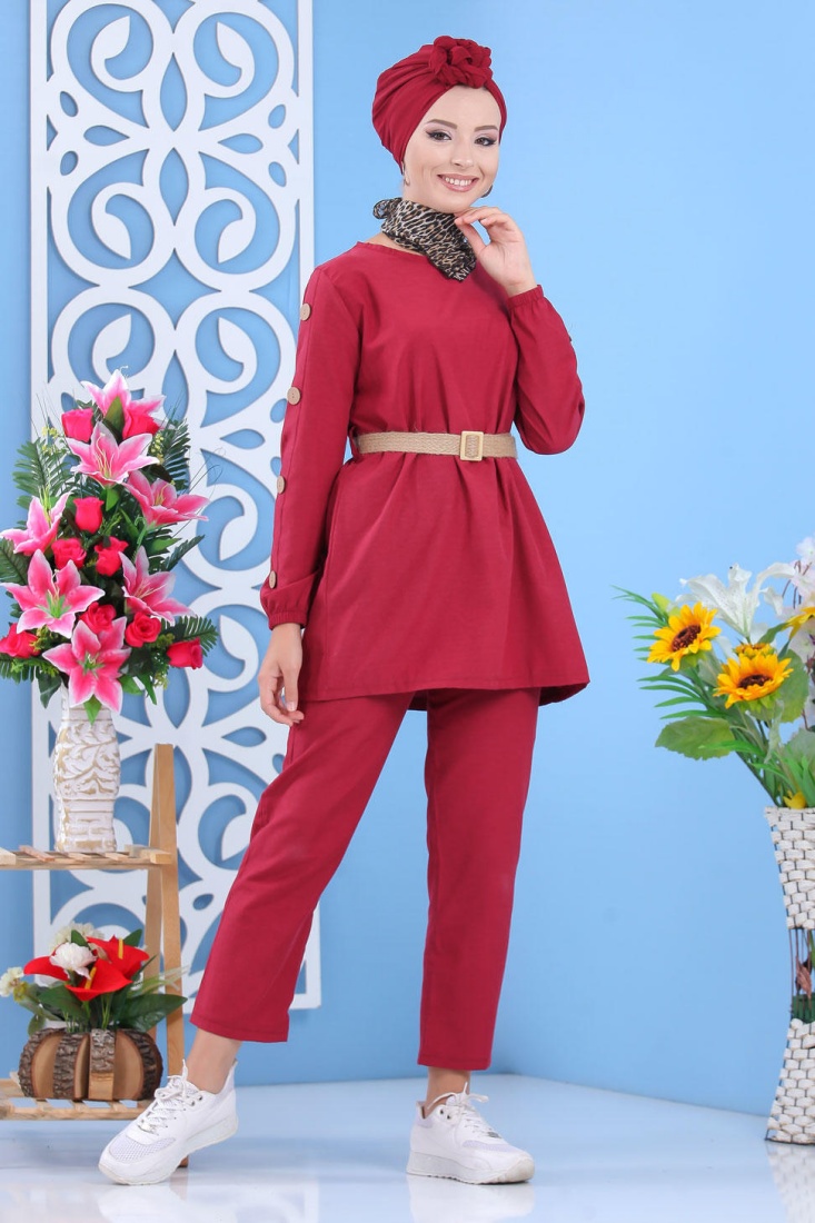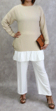 Ensemble tunique, col arrondi, ceinture tissée à passants, manches longues, décoration boutons, finition élastiques aux poignets, assorti de son pantalon taille élastique, coupe droite. Ce modèle est une valeur sûre de confort qui vous assurera un look chic au quotidien.