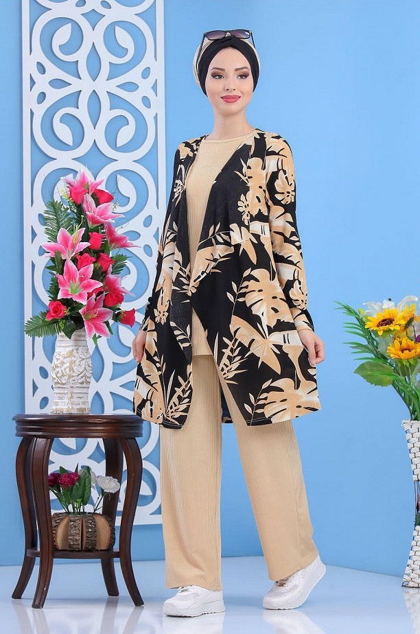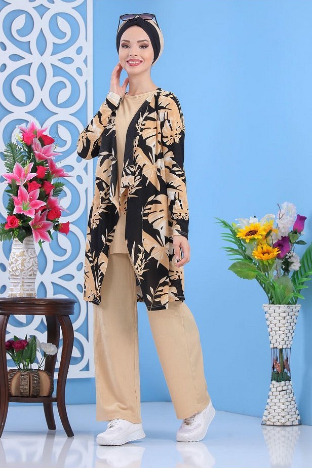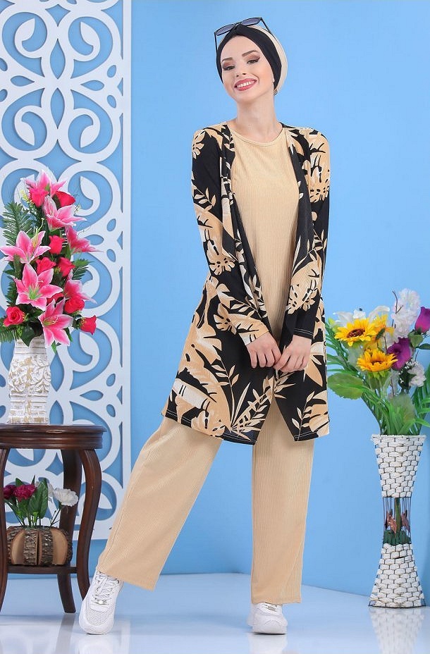 Ensemble casual veste ample et pantalon pour femme (Modest Fashion) - Couleur tabac - REF. 36249 (35.00 €)