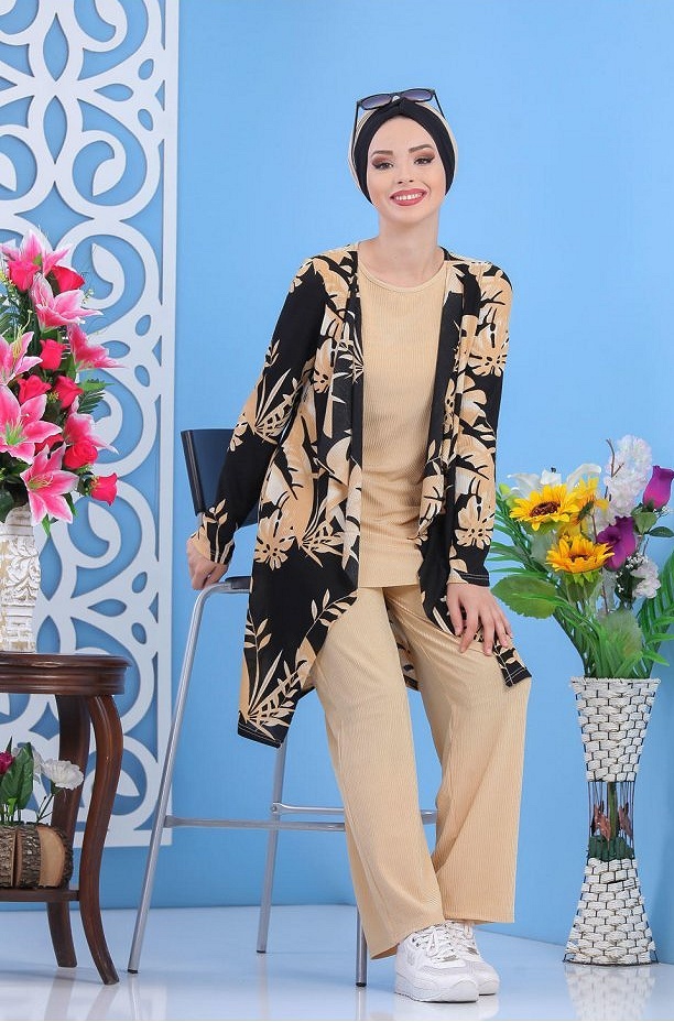 Survêtement hijab sport à capuche pour femme musulmane - Ensemble 2 pièces (Ootd) - Couleur noir et Beige - REF. 32818 (25.00 €)