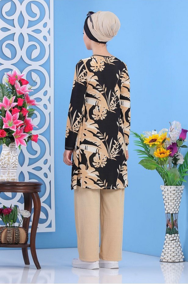 Ensemble femme deux pièces : Tunique évasée et Pantalon assortis (Vetements hijab) - Couleur beige - REF. 36201 (38.00 €)