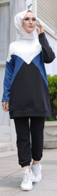 Tenue décontractée et sport deux pièces (Tunique et Pantalon) adaptée à la femme musulmane - Vêtement à 3 couleurs : noir, bleu et blanc - REF. 32919 (24.90 €)