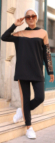 Ensemble sportswear deux pièces (Tunique et pantalon) - Survêtement motif léopard sur les manches - Couleur noir et camel - REF. 32949 (29.90 €) - En Promotion à 21.90 €