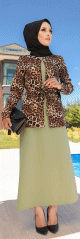 Ensemble deux pièces : veste motif léopard et robe couleur pistache avec collier assorti (Vetement hijab musulmane chic) - REF. 33139 (39.00 €)