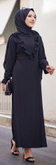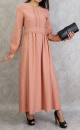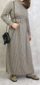 Robe longue, col chemise, fermeture bouton sur toute la longueur, manches longues finition bouton aux poignets, ceinture à passant assortie, 2 poches latérales. Coupe droite, tissu fluide et opaque.