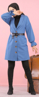 Veste Manteau femme avec ceinture intégrée (Tunique Automne Hiver - Boutique Vêtement Hijab Turque en ligne) - Couleur noir et kaki - REF. 35328 (19.90 €)