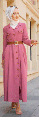 Robe longue casual boutonnée avec sa ceinture (Vetement chic pour femme voilée) - Couleur Rose - REF. 33931 (35.00 €)