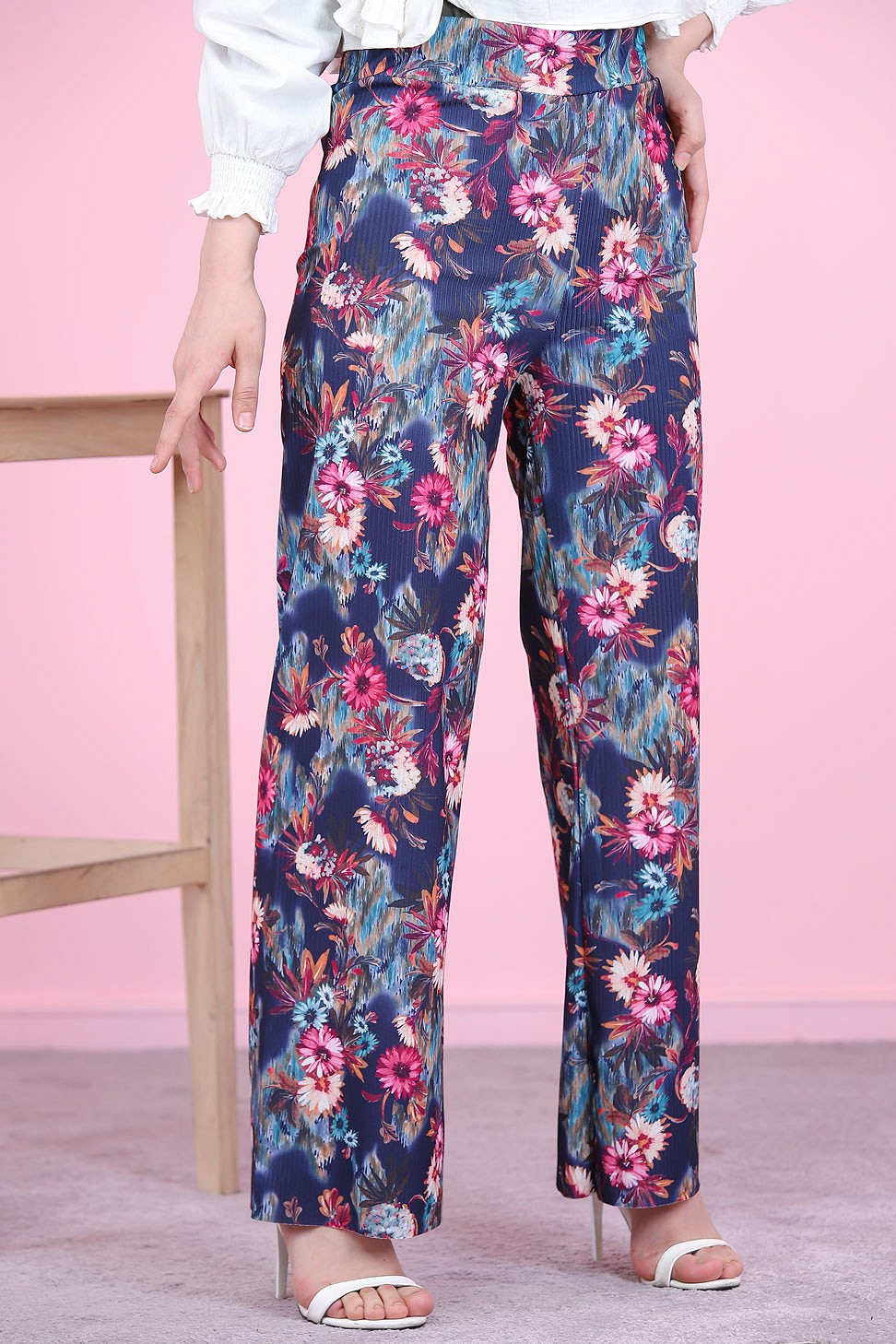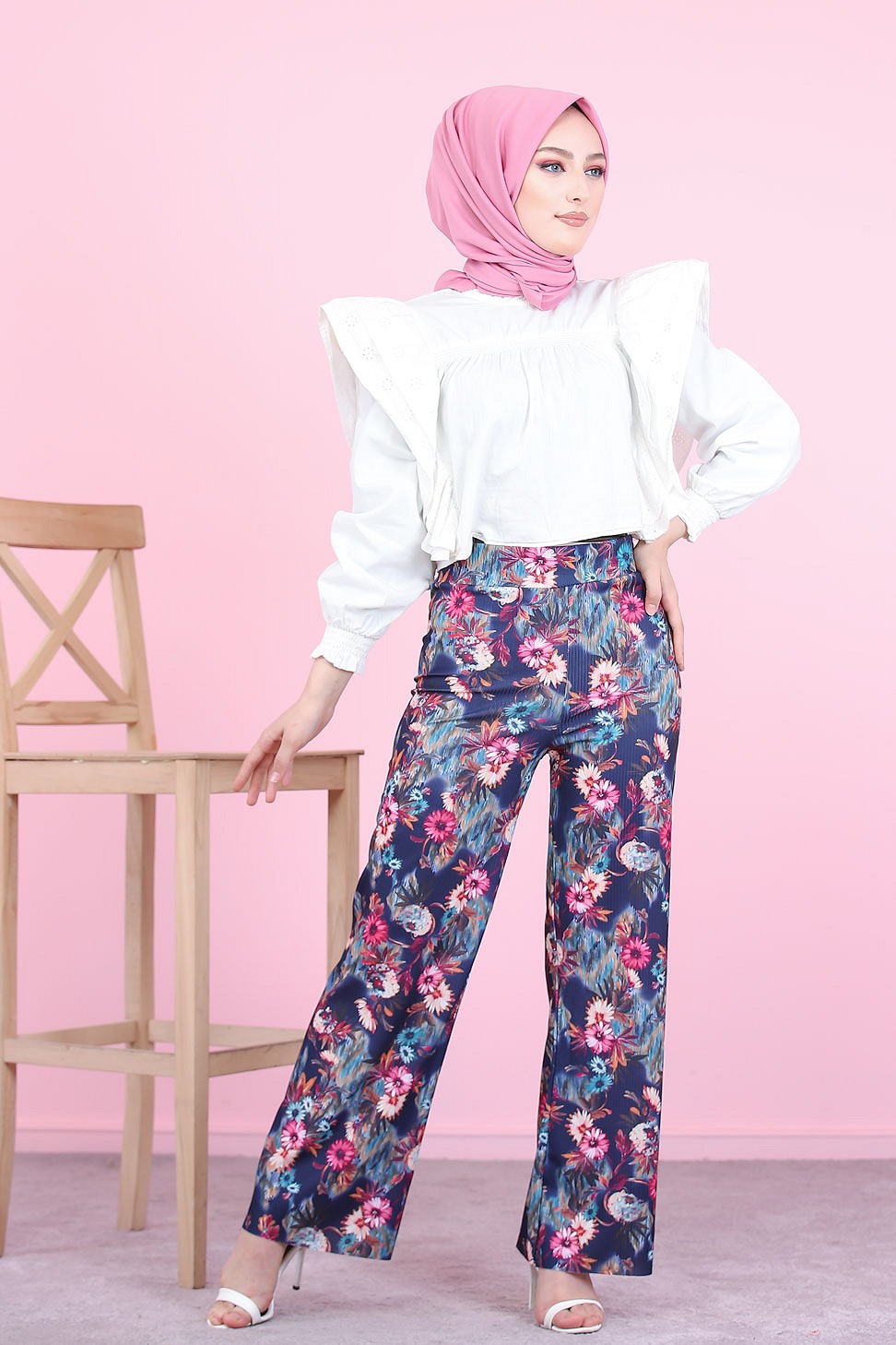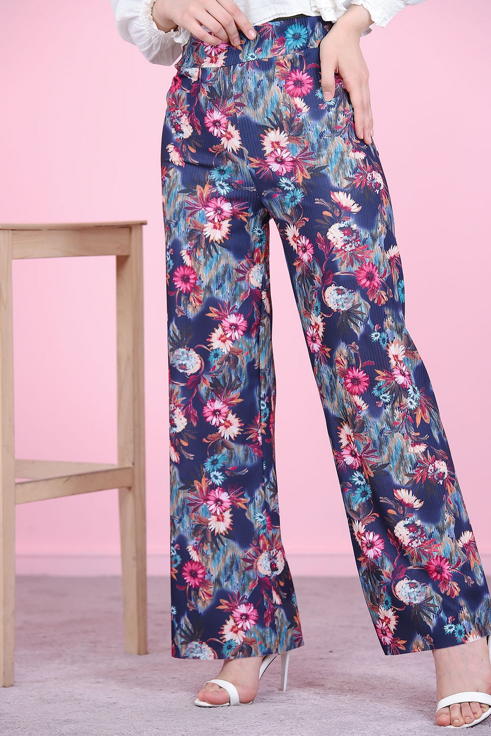 Pantalon femme imprimé à fleurs bleu marine Vetement & Accessoire