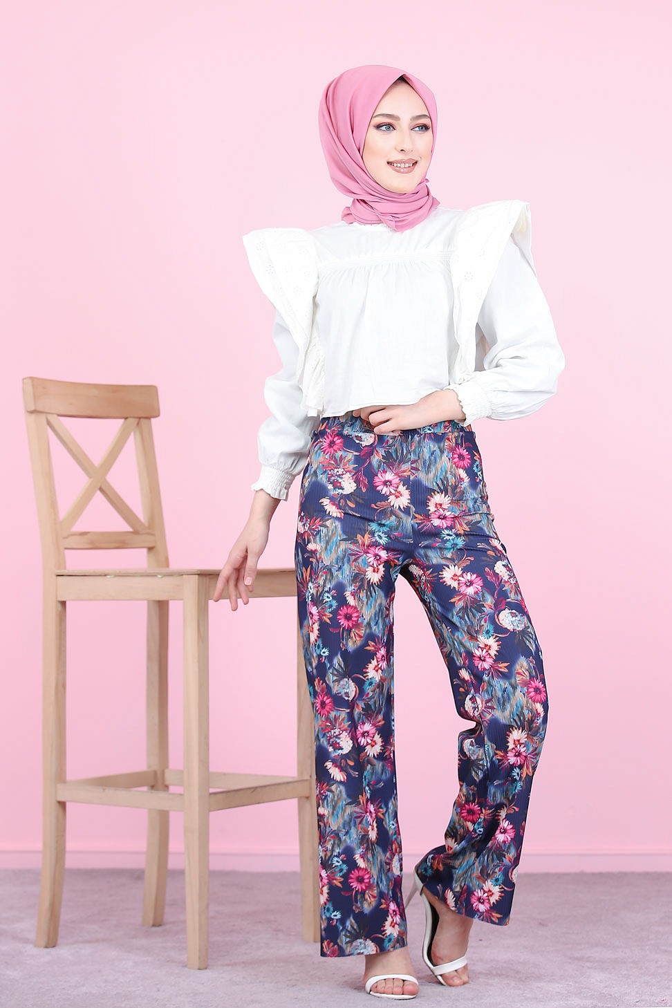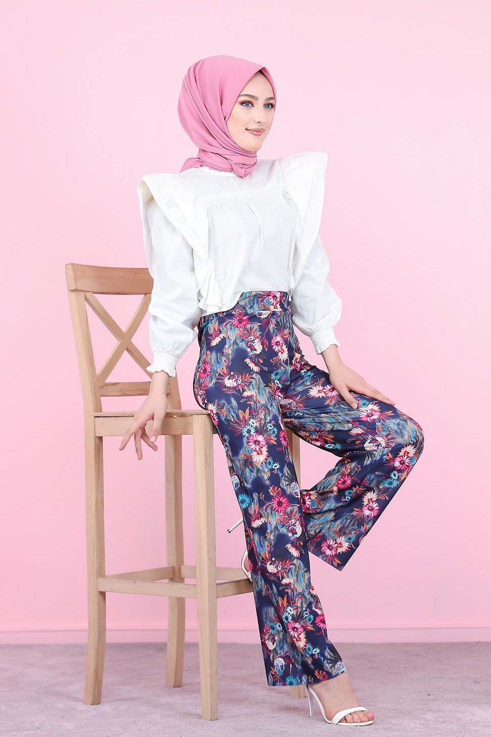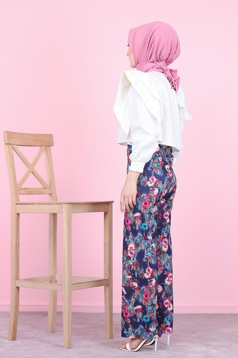 Pantalon femme imprimé à fleurs bleu marine Vetement & Accessoire