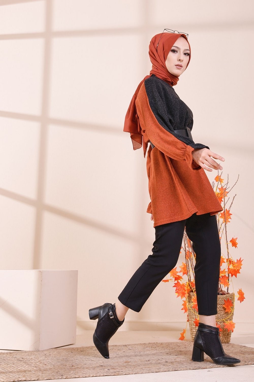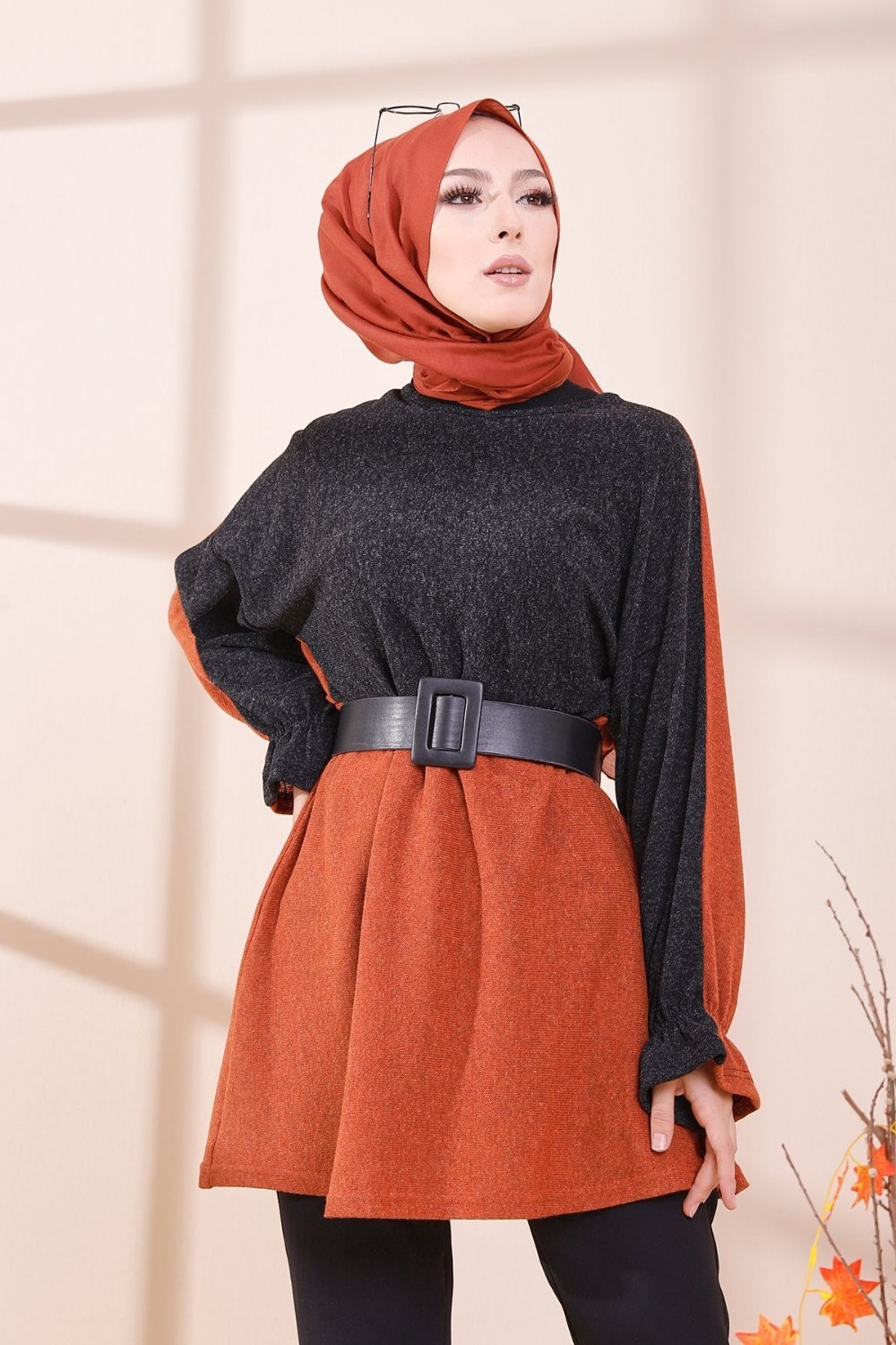 Tunique bicolore pour femme (Vêtement Hijab - Boutique en ligne Paris / France) - Couleur brique Vetement & Accessoire