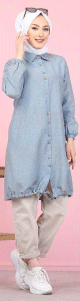 Tunique-Chemise ample boutonnée (Vetement tendance pour femme voilée) - Couleur bleu gris - REF. 32223 (25.00 €)