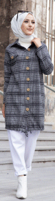 Chemise-Tunique boutonnée à carreaux pour femme (Vêtement Mode Musulmane Automne Hiver) - Couleur gris - REF. 35212 (26.90 €)