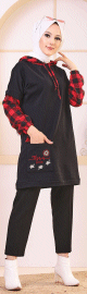 Tunique bicolore brodée avec capuche (Vêtement moderne pour femme Hijab - Nouveauté ) - Couleur anthracite et rouge - REF. 35545 (24.90 €)