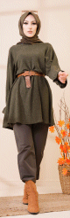 Veste Manteau femme avec ceinture intégrée (Tunique Automne Hiver - Vêtement Hijab Turque en ligne) - Couleur kaki - REF. 35263 (19.90 €)