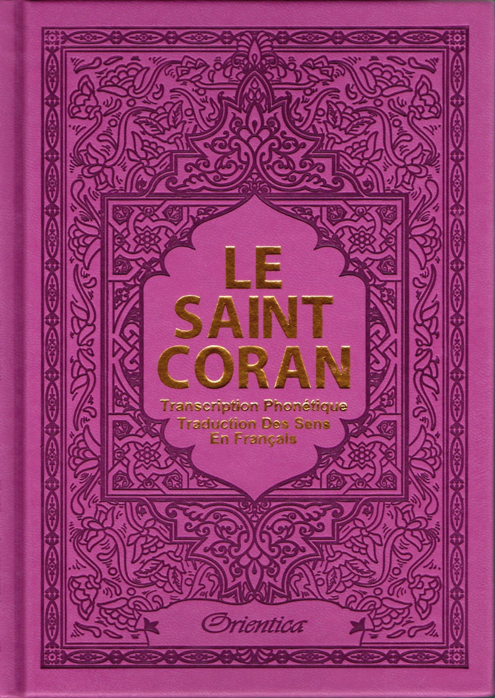 Le Saint Coran - Francais - arabe - Transcription (phonetique) - Edition de luxe (Couverture en cuir mauve-violet dore)