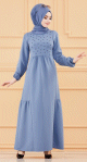 Robe longue perlée chic et classe (Vêtement hijab habillé pour femme) - Couleur bleu indigo - REF. 35986 (36.00 €)