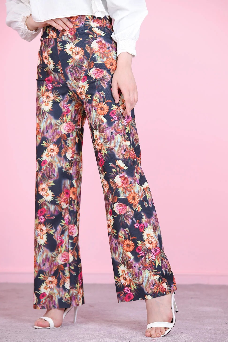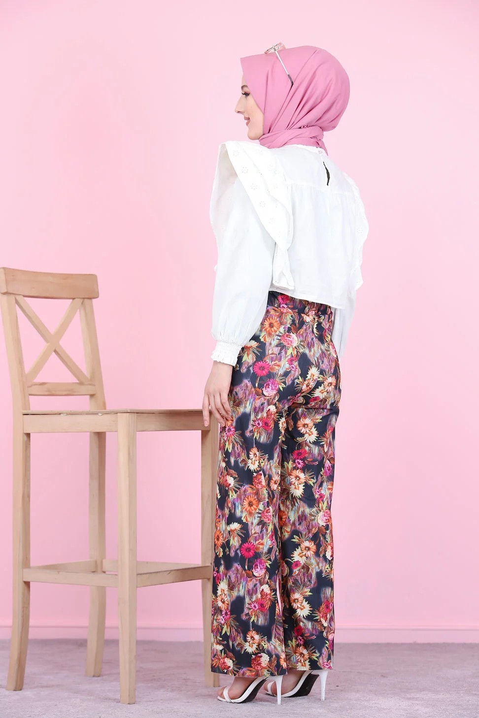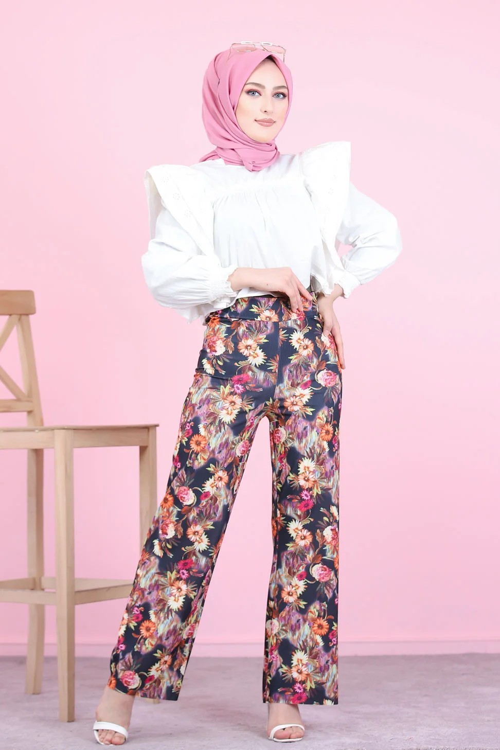 Pantalon fleuri pour femme - Couleur noir Vetement & Accessoire