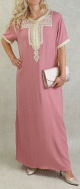 Robe marocaine d'été manches courtes avec broderies - Couleur Vieux Rose - REF. 32354 (28.00 €)