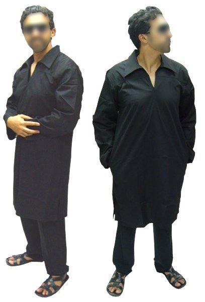 qamis noir manches longues avec col (Qamis fashion - Taille M) - REF. 7823 (25.00 €)